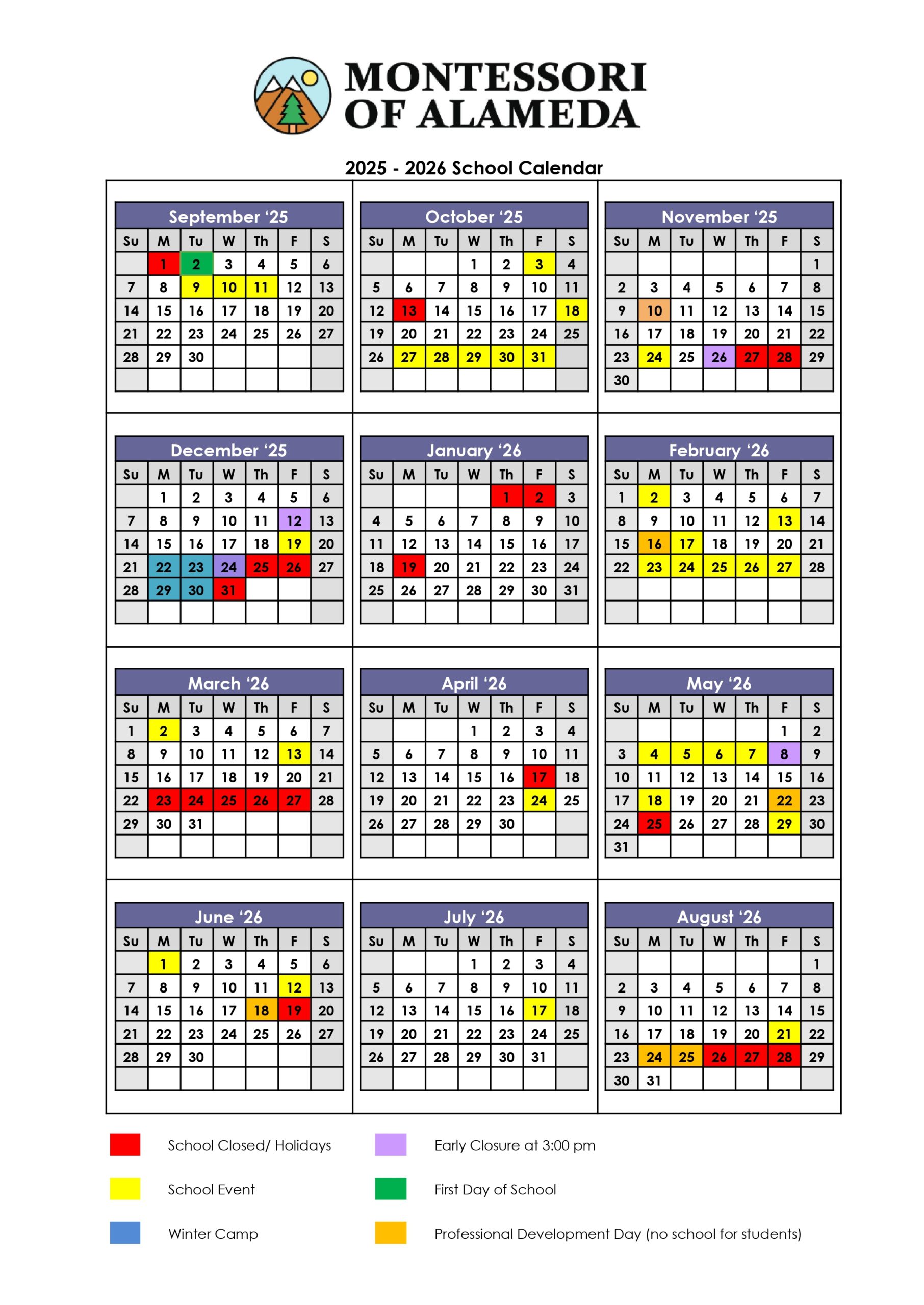 2025 – 2026 School Year Calendar