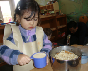 children exploring Montessori practical life exercises like pouring and scooping